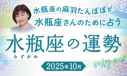 開運コラム 水瓶座占い師による、水瓶座だけのための今月運勢 2025.10.01 ageuncom 同じ星座を持つ麻羽たんぽぽ先生が、水瓶座さんだけのための月の運勢を執筆! この星を持っているからこそわかるあるある話、あるいは成功&失敗話を含め、その月のキーワード、ラッキーアクションまであらゆる角度から毎月の運勢を大い…